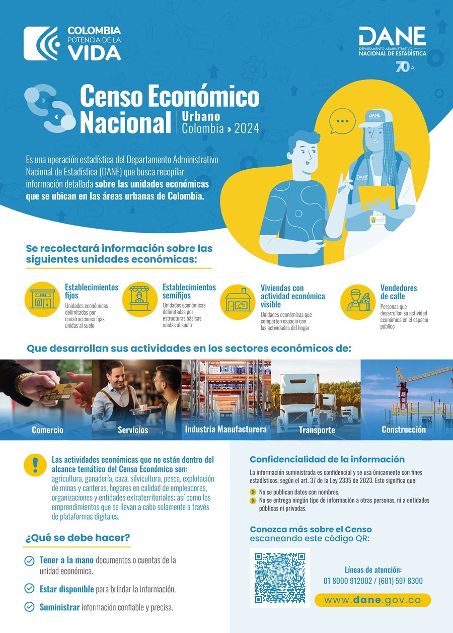 – Barrido. Entre agosto y finales del 2024, los censistas del Dane visitarán establecimientos y vendedores de calle en las cabeceras municipales y centros poblados.