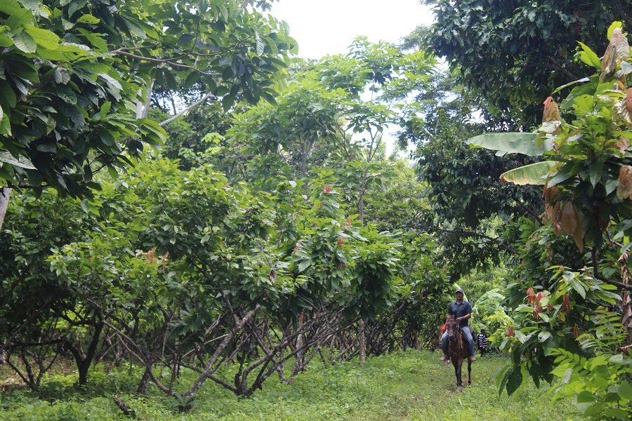 “La mayoría de las familias tiene como su principal economía el cacao, aunque también se siembra yuca, plátano, y algunos tienen ganado. Somos pequeños productores, el que más tiene posee 11 hectáreas. Los nuevos, los que están en proceso de implementación de la siembra de cacao tienen una hectárea”, explica Montes Tirado.