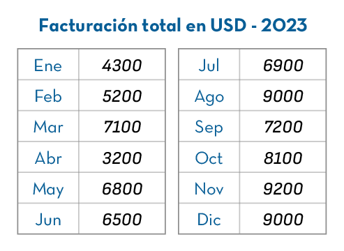 Ahora imagínate que tienes que averiguar el promedio de los últimos 6 meses contra el de los primeros 6. También necesitas saber cuál fue el mes con la facturación más alta, y cuál fue el que tuvo la más baja, y cuál es la tendencia general de la facturación para el 2023…