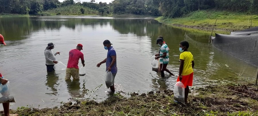 El cultivo de peces en estanques no requiere alimentación porque dentro de su hábitat lo consiguen, sin embargo, para que eso se dé a las comunidades se les capacitó en cómo hacer el cultivo, preparación del estanque, abonamiento, fertilización, desarrollo del cultivo y seguimiento de la alimentación de los peces.
