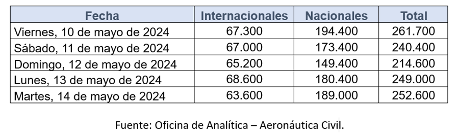 La proyección de movilización de pasajeros para este fin de semana que es puente festivo en Colombia y se celebra el Día de la Madre.